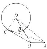 在△AOD中,∠AOD = $\frac{2\pi}{3}$,|$\overrightarrow{OA}$| = 1,|$\overrightarrow{OD}$| = 2。