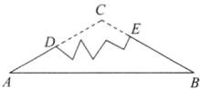 故$DE=\sqrt{CD^{2}+CE^{2}-2CD·CEcosC}=14(cm),$故D,E两点间的距离为14 cm.