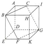 方法二:(补形法)因为几何体有两对相对面互相平行,如图所示,将多面体补成棱长为2的正方体,显然所求多面体的体积为该正方体体积的一半.又正方体的体积V_{正方体ABHI - DEKG}=2³ = 8,故所求几何体的体积V_{多面体ABC - DEFG}=$\frac{1}{2}$×8 = 4.