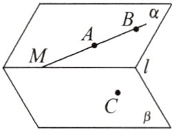 1. 如图,α∩β = l,A,B∈α,C∈β,且A,B,C∉l,直线AB∩l = M,过A,B,C三点的平面记作γ,则γ与β的交线必经过 ( )