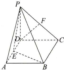 所以 $DF// GE$,因为 $DF\not\subset$ 平面 $PBE$,$GE\subset$ 平面 $PBE$,所以 $DF//$ 平面 $PBE$;