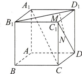 (2)连接 B1A,AD1(图略).因为 B1C//AD1,所以四边形 ADC1B1 为平行四边形,所以 C1D//AB1.因为 MN⊥C1D,所以 MN⊥AB1.又 MN⊥B1D1,AB1∩B1D1 = B1,所以 MN⊥平面 AB1D1.易得 A1C⊥AB1,由