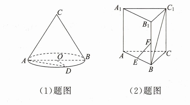 (2)如图所示,在三棱柱ABC - A₁B₁C₁中,AA₁⊥底面ABC,AB = BC = AA₁,∠ABC = 90°,点E,F分别是棱AB,BB₁的中点,则直线EF和BC₁所成的角为______________.