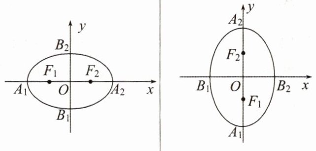 标准方程 $\frac{x^{2}}{a^{2}}+\frac{y^{2}}{b^{2}} = 1(a>b>0)$ $\frac{y^{2}}{a^{2}}+\frac{x^{2}}{b^{2}} = 1(a>b>0)$