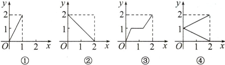 1. 设集合M = {x|0≤x≤2},N = {y|0≤y≤2},那么下列四个图象中,能表示集合M到集合N的函数关系的是 ( )