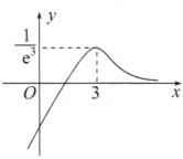 所以$\varphi(x)$在$(-\infty,3)$上单调递增,在$(3,+\infty)$上单调递减,且$\varphi(x)_{max}=\varphi(3)=\frac{1}{e^{3}}$,