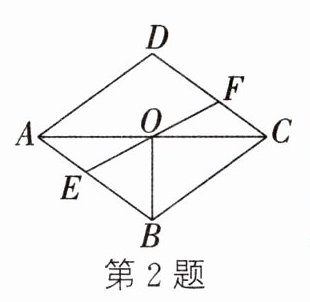 2.如图,在菱形ABCD中,E,F分别是AB,CD上的点,且AE=CF,EF与AC相交于点O,连接BO.若∠DAC=36°,则∠OBC的度数为 ( )