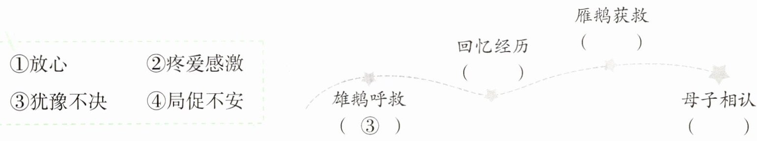 4.(新思维)阅读节选部分内容,体会人物内心的变化,在导图中的括号里填入正确答案的序号。