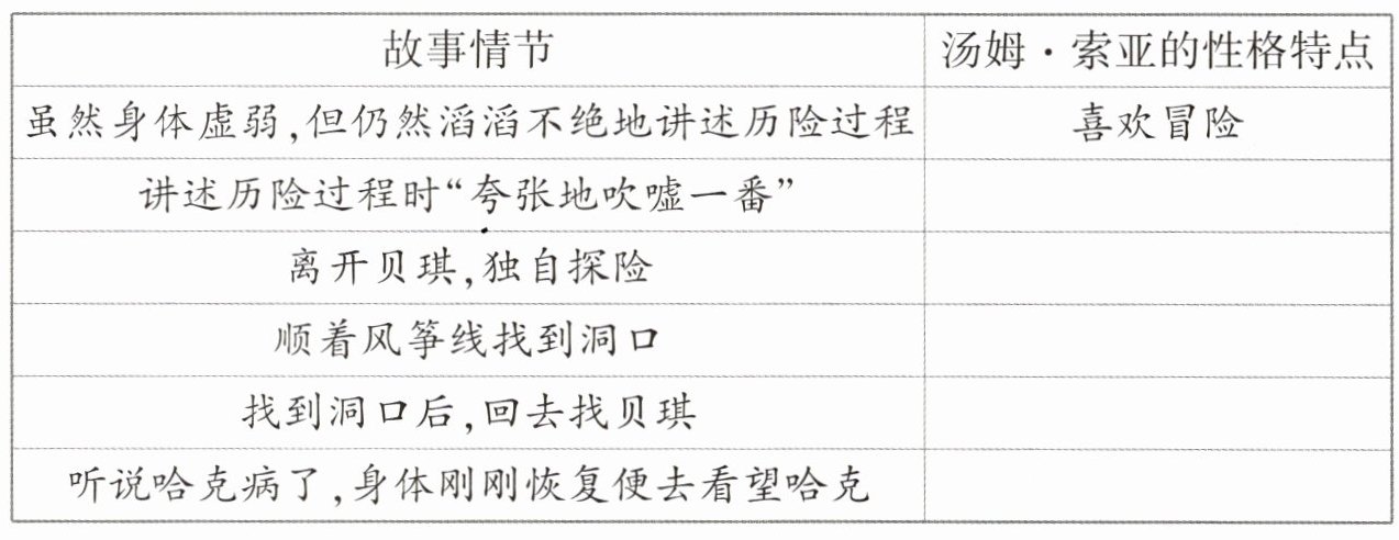 三、(语文要素)同学们正在讨论汤姆·索亚是个怎样的人,请你根据故事情节来说一说。考点9