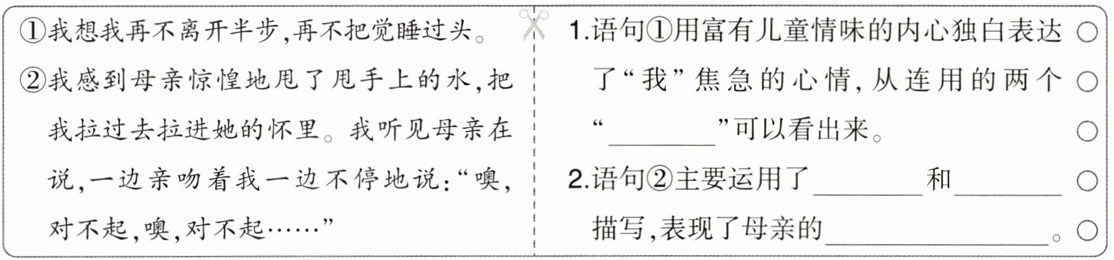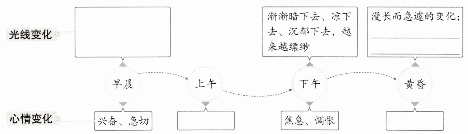 五、(新思维)梳理光线变化和“我”的心理变化,从文中找出合适的词句填在方框里。考点7