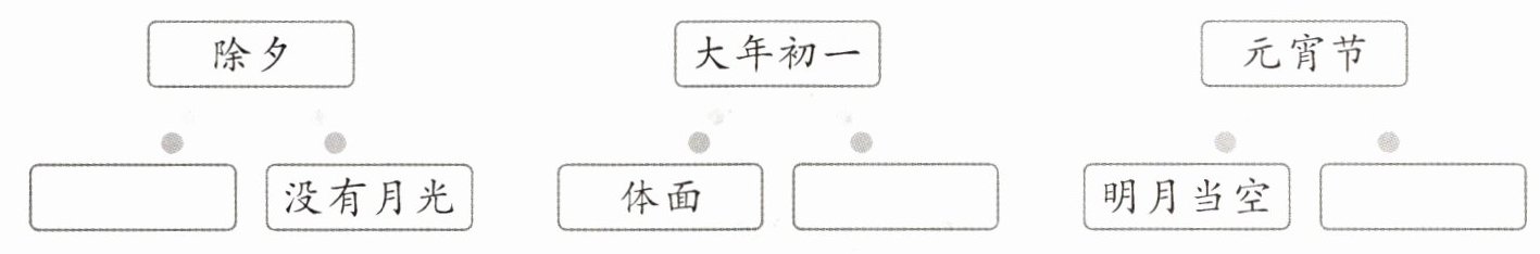 2. 依据语段内容,比较元宵节、除夕、大年初一的特点,填一填。