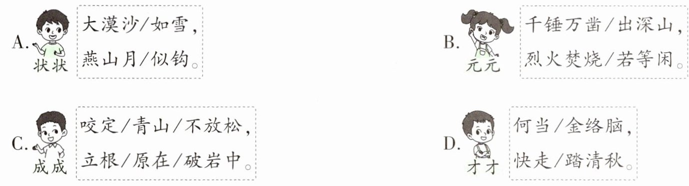 三、(新情境)同学们正在朗读古诗,朗读节奏有误的是( )