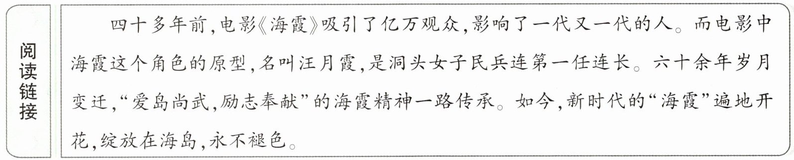 4. 结合短文内容,说一说你对“海霞精神”的理解。