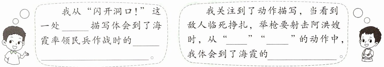 4. 示例:从女民兵与敌人战斗的内容可知,“海霞精神”指的是保家卫国,英勇战斗的精神。