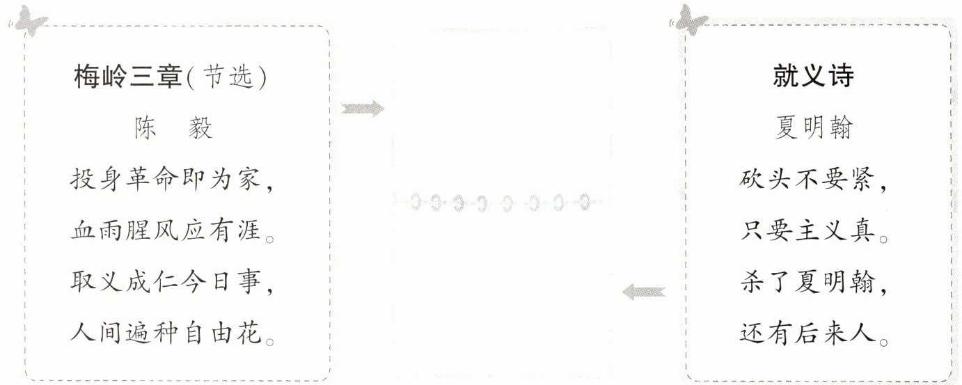 二 同学们收集了一些红色诗词,说说下面两首诗体现了革命先辈怎样的革命精神?