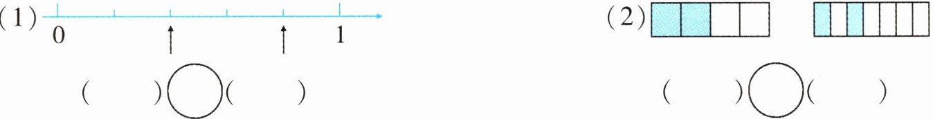 1. 在括号里填上适当的分数,在$\bigcirc$里填“>”或“<”。
