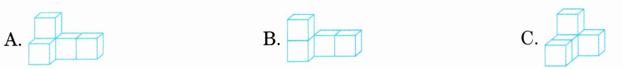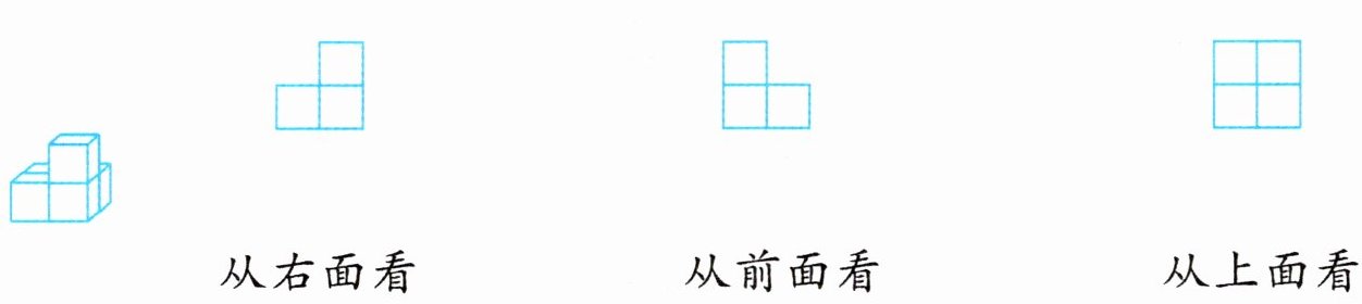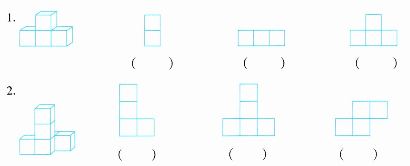 二、下面各图形分别是从前面、上面和右面哪个位置看到的?填一填。