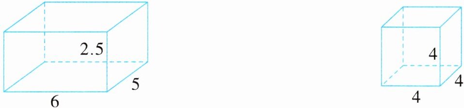 $(6×5 + 6×2.5 + 5×2.5)×2 = 115(cm^{2})$ $4×4×6 = 96(cm^{2})$