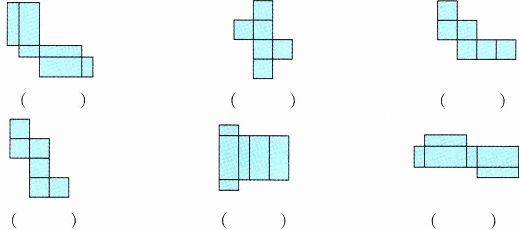 一、观察下面各图形,哪些能折成长方体或者正方体?能折成的括号里画“√”。