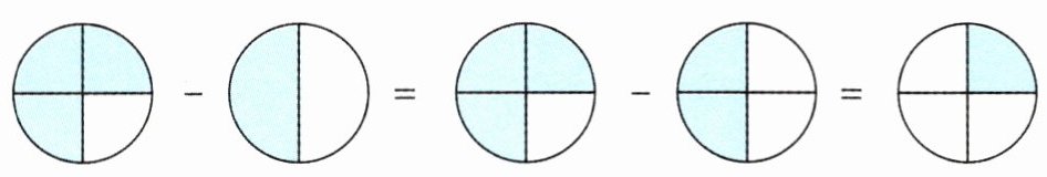 $\frac{3}{4}-\frac{2}{4}=\frac{1}{4}$