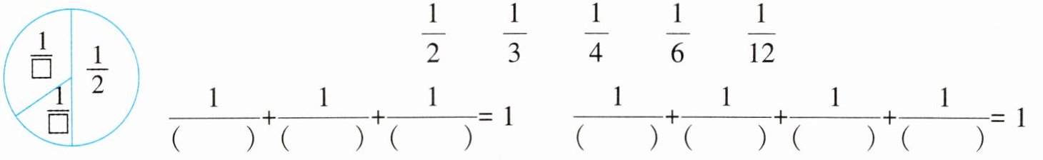$\frac{1}{2}$ + $\frac{1}{3}$ + $\frac{1}{6}$ = 1;$\frac{1}{2}$ + $\frac{1}{4}$ + $\frac{1}{6}$ + $\frac{1}{12}$ = 1