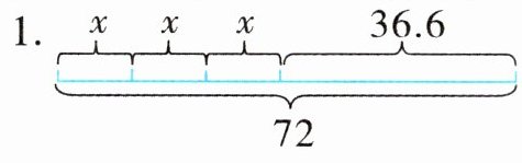 1. \(3x + 36.6 = 72\) 2. \(3x\div2 = 4.5\