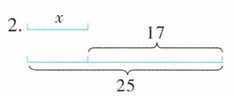 1. $5x = 22.5$ $x = 4.5$ 2. $x + 17 = 25$ $x = 8$