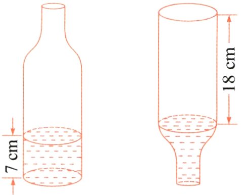 32. 如图,一个内直径是6 cm的瓶子里,水的高度是7 cm。把瓶盖拧紧倒置放平,无水部分是圆柱形,高度是18 cm。这个瓶子的容积是多少毫升?