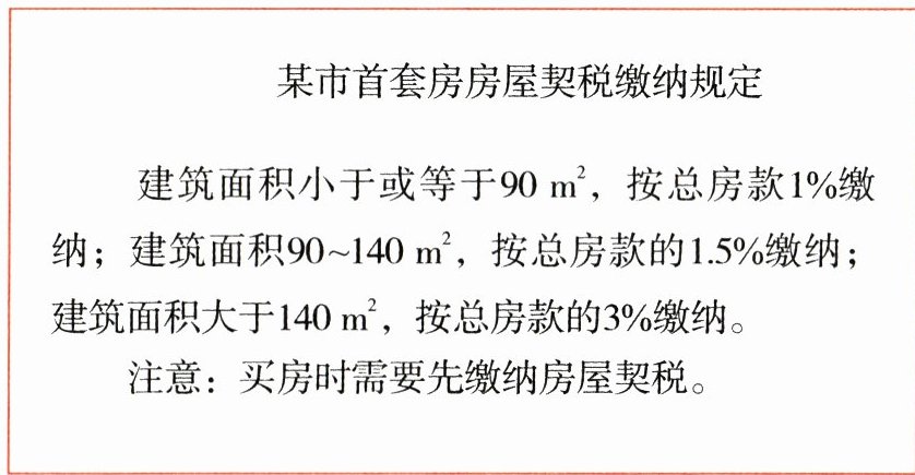 4.李叔叔准备了35万元作为首付款,想购买某小区125m²,单价为8000元/m²的商品房。购房时需要缴纳一定的契税,首套房最低要付三成的首付款。
