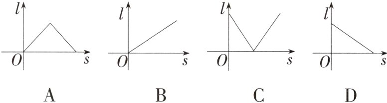 13. 抽象能力 如图,小红晚上在一条笔直的小路上由A处径直走到B处,小路的正中间有一盏路灯,那么小红在灯光照射下的影长l与她行走的路程s之间的变化关系用图像刻画出来大致是 ( )