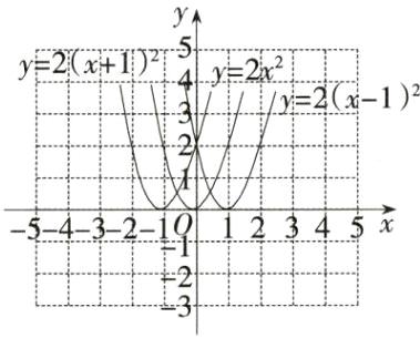 解:在平面直角坐标系中,先画出$y = 2x^2$的图像,将$y = 2x^2$的图像向右平移1个单位长度得$y = 2(x - 1)^2$的图像,向左平移1个单位长度得$y = 2(x + 1)^2$的图像.如图: