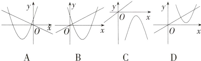 7. 习题衍生教材P55,AT1改编 已知函数$y = ax$和$y = a(x + m)^2 + n$,且$a>0,m<0,n<0$,则这两个函数在同一坐标系内的大致图像是 ( )