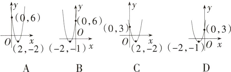 9. 练习变式教材P34,练习改编 下列二次函数中,其图像顶点是$(-2,-6)$的是 ( )