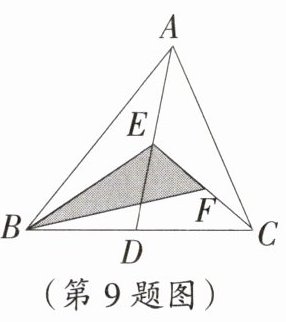 9. 数形结合思想 如图,在一块△ABC面板中,将△BEF涂灰,其中点D,E,F分别为BC,AD,CE的中点,小华随意向△ABC面板内部射击一粒弹丸,则弹丸击中灰色区域的概率是______.