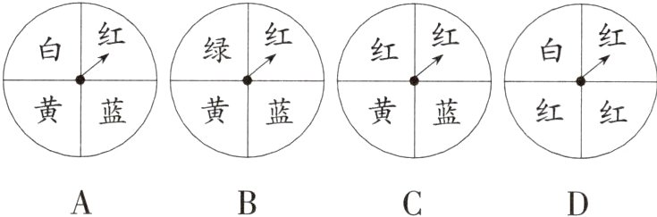2. 转动转盘,当转盘停止转动时,指针落在红色区域的可能性最大的是 ( )