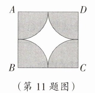 11. 几何概率 如图,在正方形$ABCD$中,分别以四个顶点为圆心,以边长的一半为半径画圆弧,若随机向正方形$ABCD$内投一粒米(米粒大小忽略不计),则米粒落在图中阴影部分的概率为________.