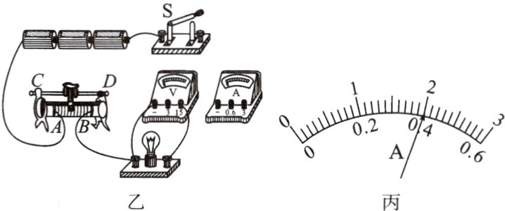 (2)若电流表正确接入图乙电路,闭合开关前,某同学发现电路有一处错误,这个错误是______。改正错误后,闭合开关,将变阻器滑片向右移动时,电流表示数变大,则变阻器接入电路的接线柱是______(选填“AD”或“BC”)。