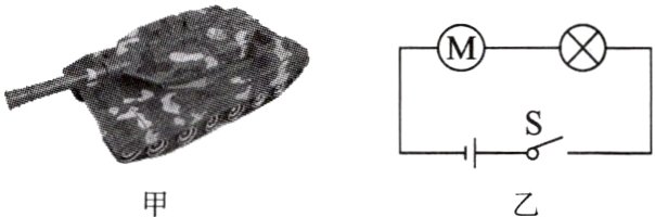 4.(临沂市中考)图甲是一款能自动变形、万向行走的坦克玩具,其简化电路如图乙所示。该玩具的电源电压为4.5V,闭合开关后,“0.5V 0.2W”的指示灯正常发光,线圈电阻为0.5Ω的电动机正常工作,则 ( )