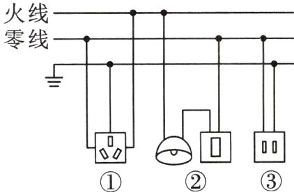 2.(天津市中考)如图为部分家庭电路示意图,其中连接正确的是 ( )