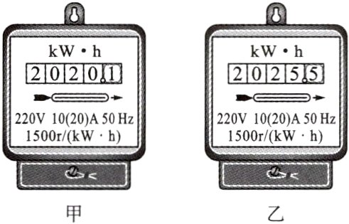 13. 李老师出差时恰逢抄表日,家中电能表的示数如图甲所示,出差返回时发现家中有一盏15W的台灯亮着,检查其他电器发现在出差时均已切断电源,再查看电能表,示数如图乙所示,则这盏台灯消耗的电能为______kW·h,李老师出差的时间为______天。