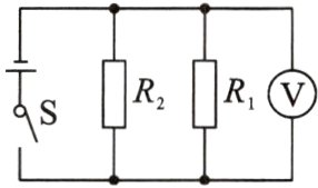 12. 如图所示,$R_1 = 10Ω$,$R_2 = 5Ω$,闭合开关,电压表的示数为3V,电源电压$U =$______V,$R_1$的电功率$P_1 =$______W,通电10s后,$R_2$消耗的电能$W_2 =$______J。