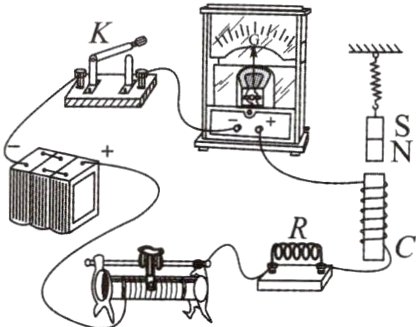 14.(科学思维)如图,条形磁铁挂在弹簧下,在其正下方有一个电磁铁,闭合开关K后,螺线管的上端是_____极,条形磁铁的下端与螺线管的上端相互________;将滑片向右移动时,电流表的读数将________,弹簧的长度将________;若不移动滑片,要使弹簧长度变短,可以采取的方法是________________。
