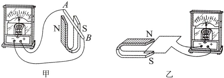 (1) 如图甲所示,保持蹄形磁体竖直放置,使导体AB从图示位置向上运动,电路中____(选填“有”或“无”)感应电流;
