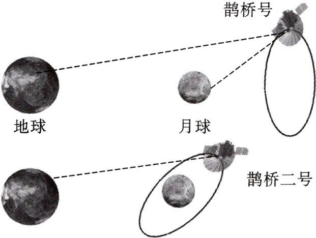 2.(物理与科技)(湖北省中考)我国于2018年和2024年先后发射了“鹊桥号”和“鹊桥二号”中继星,架起了地球与月球背面通信的“天桥”。相比于“鹊桥号”,“鹊桥二号”距月球更近(如图),采用了反射率更高的镀金钼丝天线。下列说法不正确的是( )