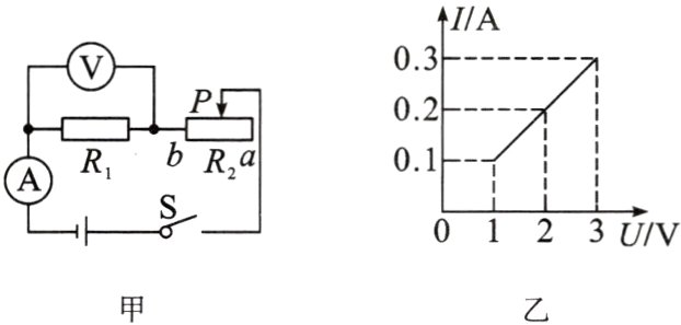 1. 如图甲所示的电路,电源电压保持不变,闭合开关S,滑动变阻器滑片P从a端移动到b端的整个过程中,电流表示数I与电压表示数U的关系图象如图乙所示。则电阻R₁的阻值为______Ω;当变阻器滑片P处于a端时,电阻R₁消耗的电功率为______W。