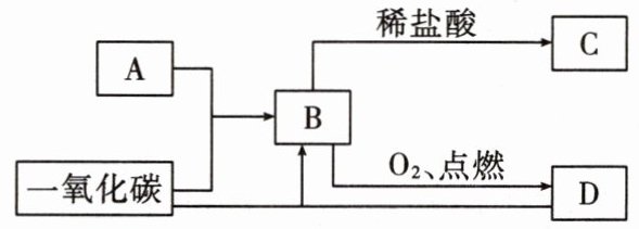11. (2023自贡)A、B、C、D四种物质均含同一种金属元素,A为赤铁矿的主要成分,B为单质。它们之间的转化关系如图所示(图中“—”表示物质间能相互发生反应,“→”表示物质间能发生一步转化,部分物质和反应条件已略去)。
