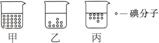 (2)甲、乙、丙三名同学分别画出下面的示意图,表示溶液中碘分子的分布(汽油分子没有画出)。