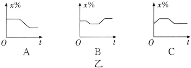 (2)若Y为硝酸钾,则②中溶液在恒温下蒸发水分至有较多的晶体析出,然后冷却至30℃并保持温度不变。图乙可以正确表示此过程中溶质质量分数(x%)与时间(t)的关系的示意图是________(填字母)。