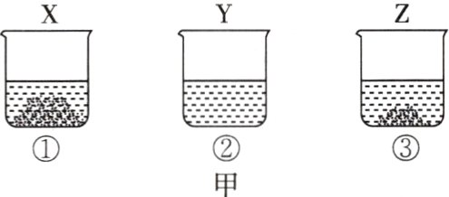(1)小宁向各盛有等量70℃水的烧杯①、②、③中,分别加入20gX、Y、Z三种纯净物(不含结晶水,不与水反应),充分溶解后,结果如图甲。此温度下,溶解度最大的物质是______。