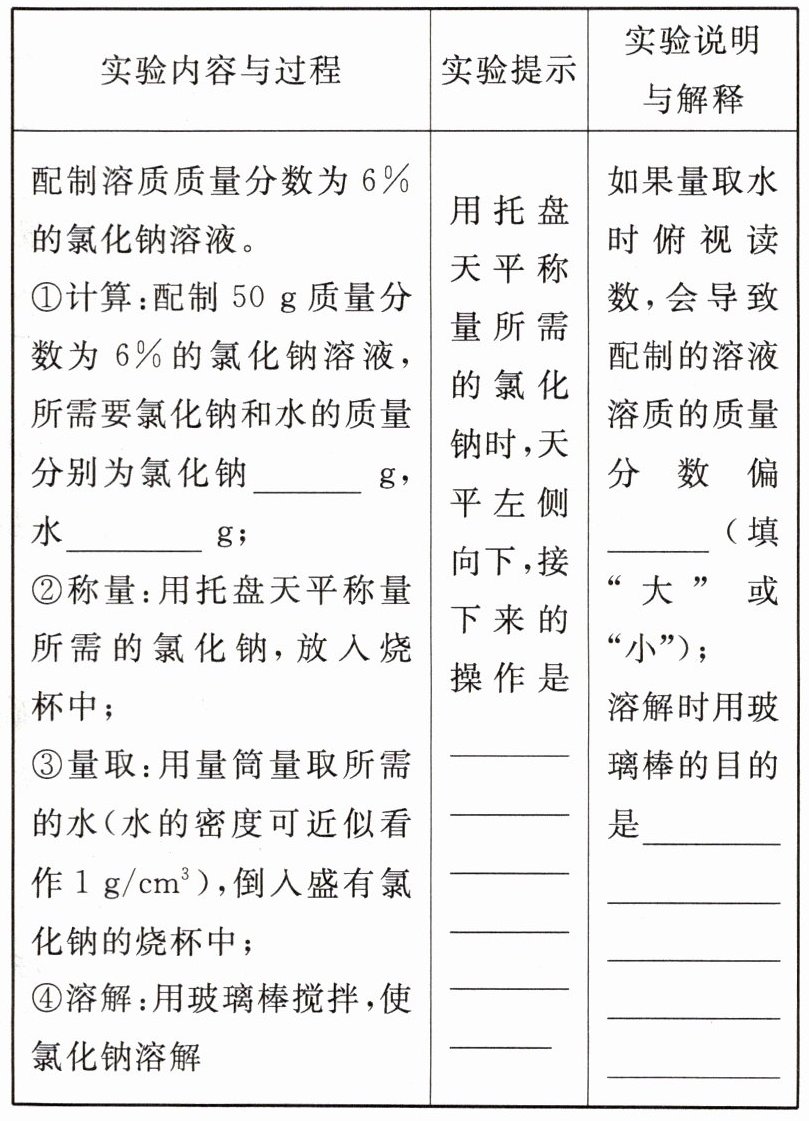 3 47 减少左侧试剂的质量,直至天平平衡 大 搅拌,加快氯化钠的溶解速率